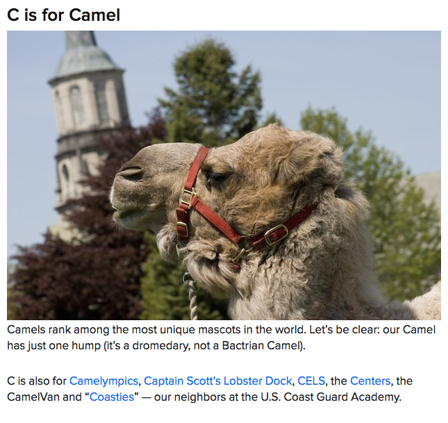 The ABCs of Connecticut College has proven to be our most successful and community-appreciated BuzzFeed article to date. The concept was simple: build a dictionary of words about our campus culture, giving prospective students and "insider's feel" and giving alumni a feeling of nostalgia and pride. Each letter had to have a highly compelling visual element. Using a combination of College photography, video and community Instagrams, the result was a diverse, lively and fresh look at Connecticut College with content that would remain reusable in the future.